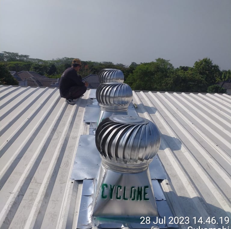Hasil Foto pemasangan turbin ventilator di berbagai proyek kami.